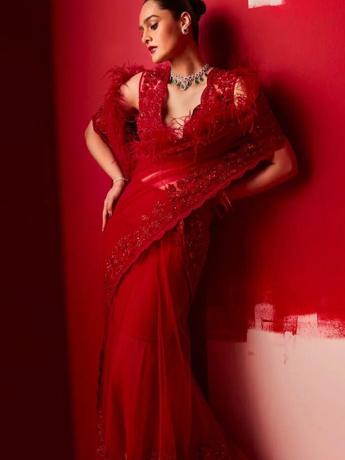 - Draping: Gown drapes elegantly, enhancing the saree’s allure.
