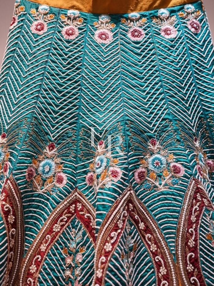 - Work: Flower vine sequence embroidery, Cutdana work on lehenga choli & dupatta.
