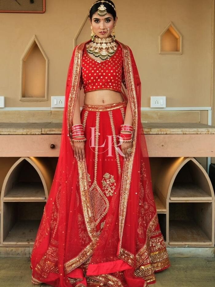 Red Silk Embroidered Bridal Lehenga