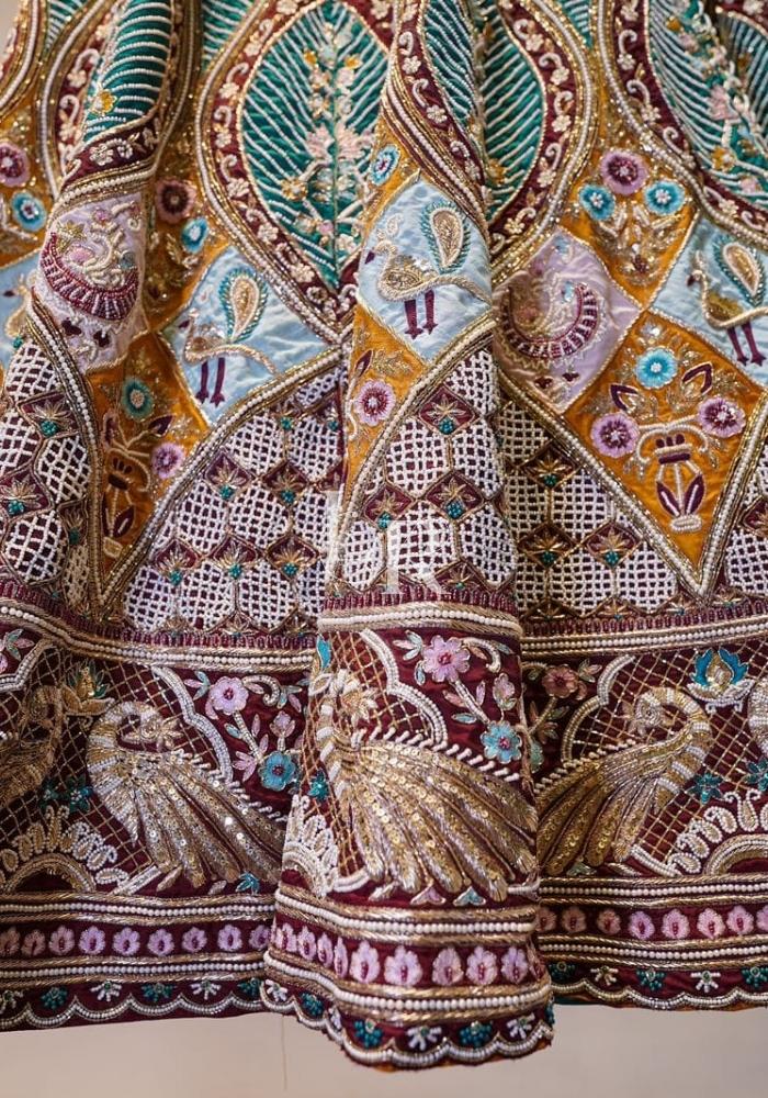 • Work – Embroidery, zardozi, dabka, flower vine, motifs & sequins work.