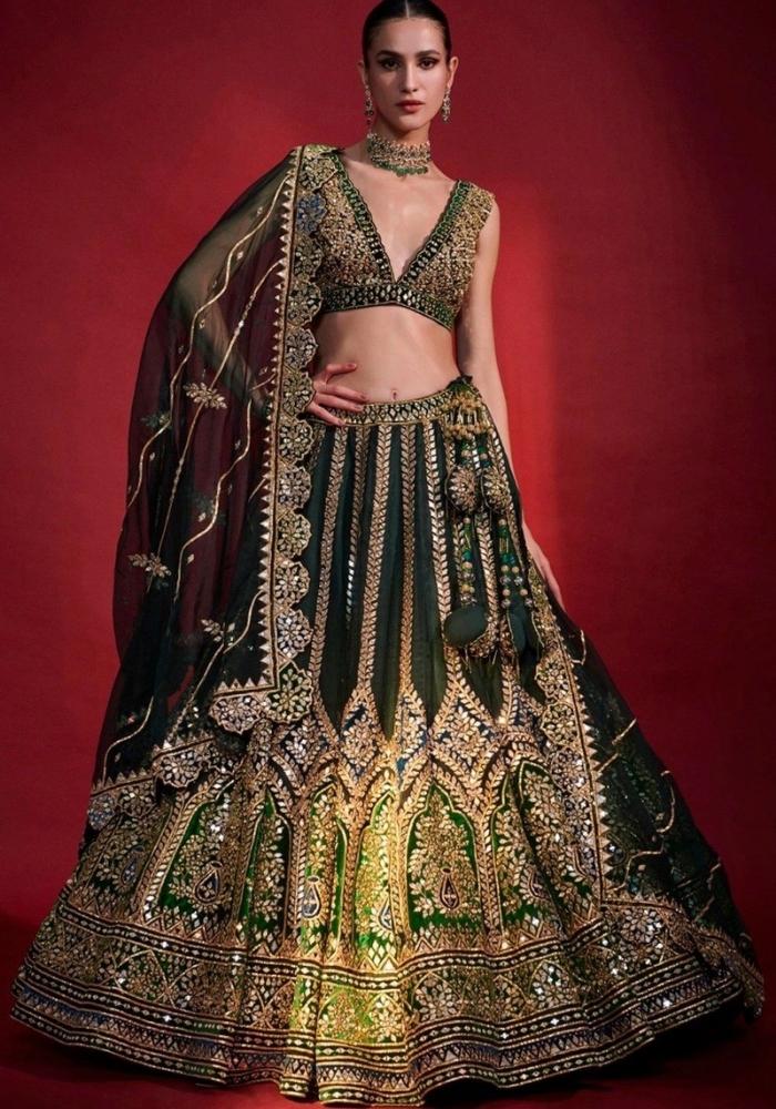 Discover the allure of our Embroidered Emerald Green Lehenga Choli, a dazzling choice that embodies luxury and sophistication. The deep emerald green fabric creates a rich and vibrant backdrop, while the intricate embroidery, adorned with delicate patterns and opulent accents, adds a touch of regal splendor. This lehenga choli features a beautifully crafted silhouette that enhances your elegance and poise, making it perfect for brides seeking a dramatic and unforgettable look. With its combination of striking color and exquisite craftsmanship, this ensemble promises to make you the center of attention on your special day.