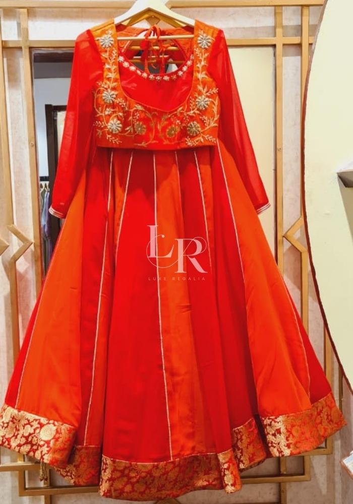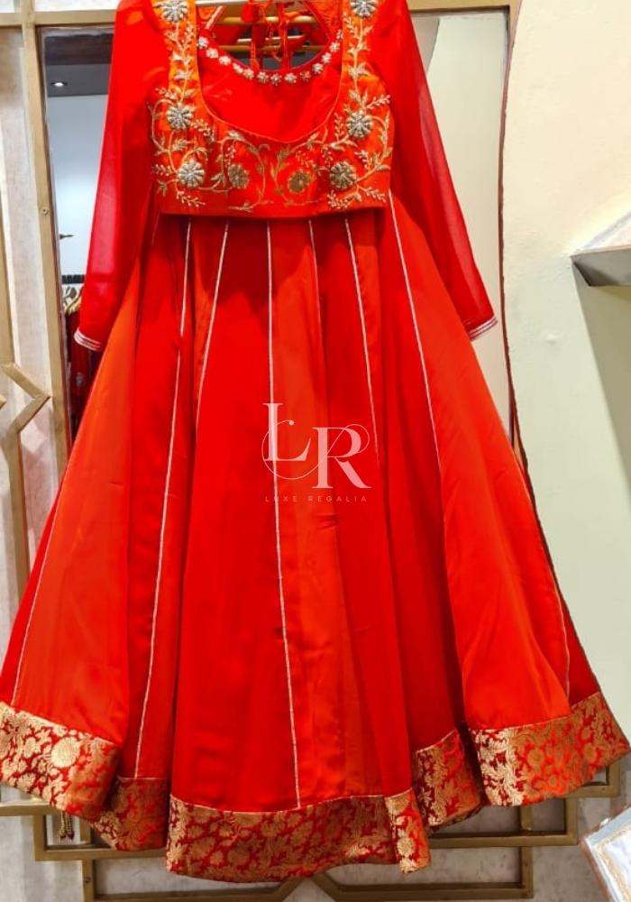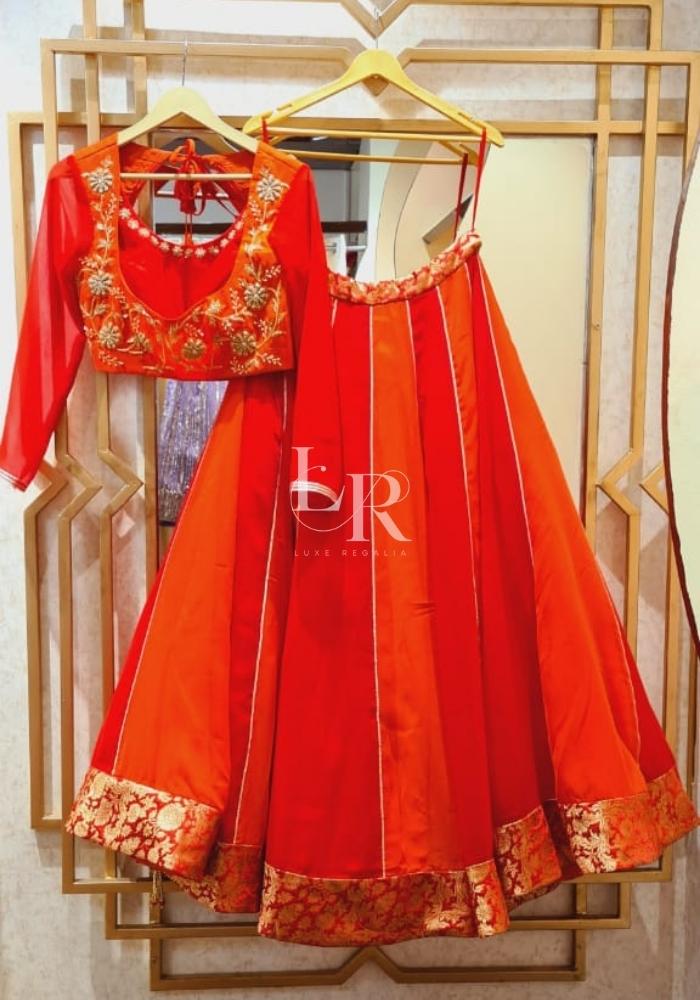 Radiate charm and elegance with our Embroidered Orange Silk Party Wear Lehenga, a perfect choice for any festive celebration. This vibrant ensemble features a luxurious silk lehenga in a striking orange hue, adorned with intricate zari and thread embroidery, enhanced by sparkling sequins and beads. The flared silhouette of the lehenga moves gracefully, ensuring you make a memorable entrance at any event. The matching choli is tailored for a flattering fit, with detailed embroidery that extends the elegance of the lehenga. Completing the look is a lightweight, sheer dupatta with delicate embroidered accents and a beautifully embellished border, offering versatile styling options. This Embroidered Orange Silk Party Wear Lehenga is designed to make you stand out, combining traditional craftsmanship with contemporary style for a truly stunning appearance.