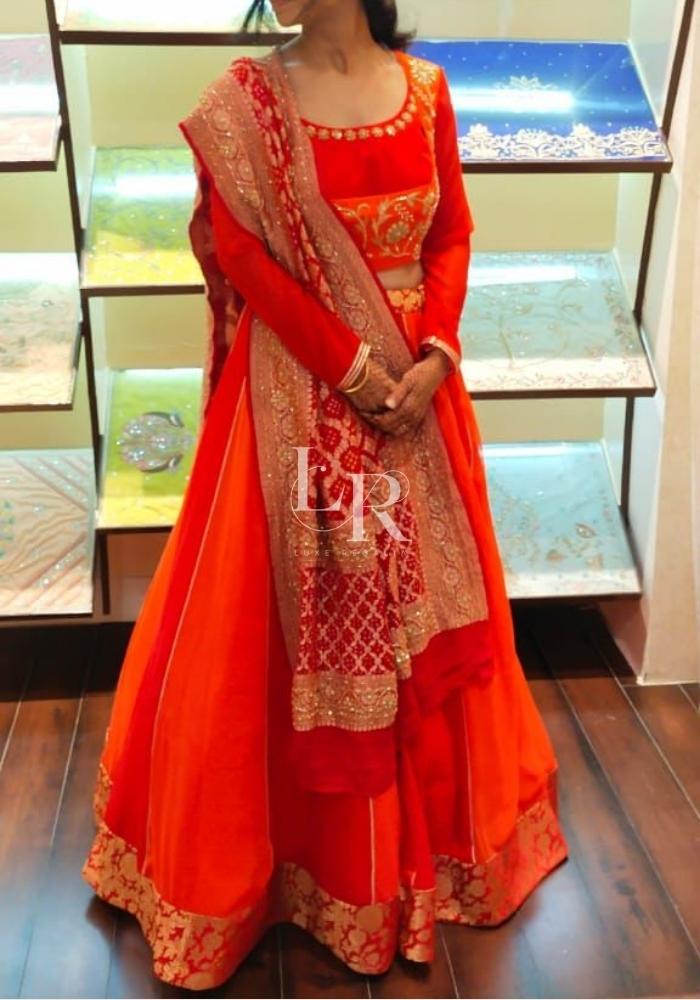 - Inclusions – Lehenga, Net sleeve backless blouse & dupatta.