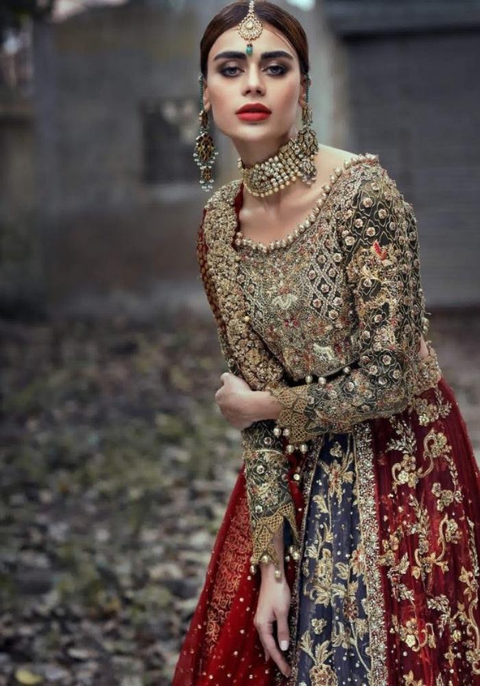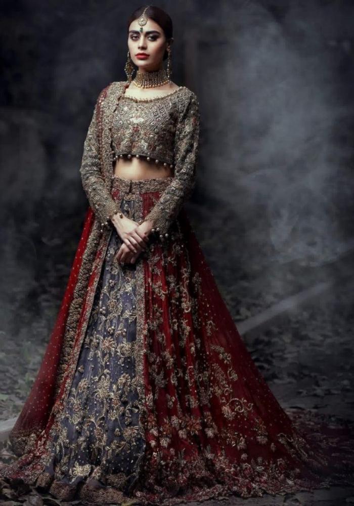 Flint Grey Net Trail Bridal Embroidered Lehenga